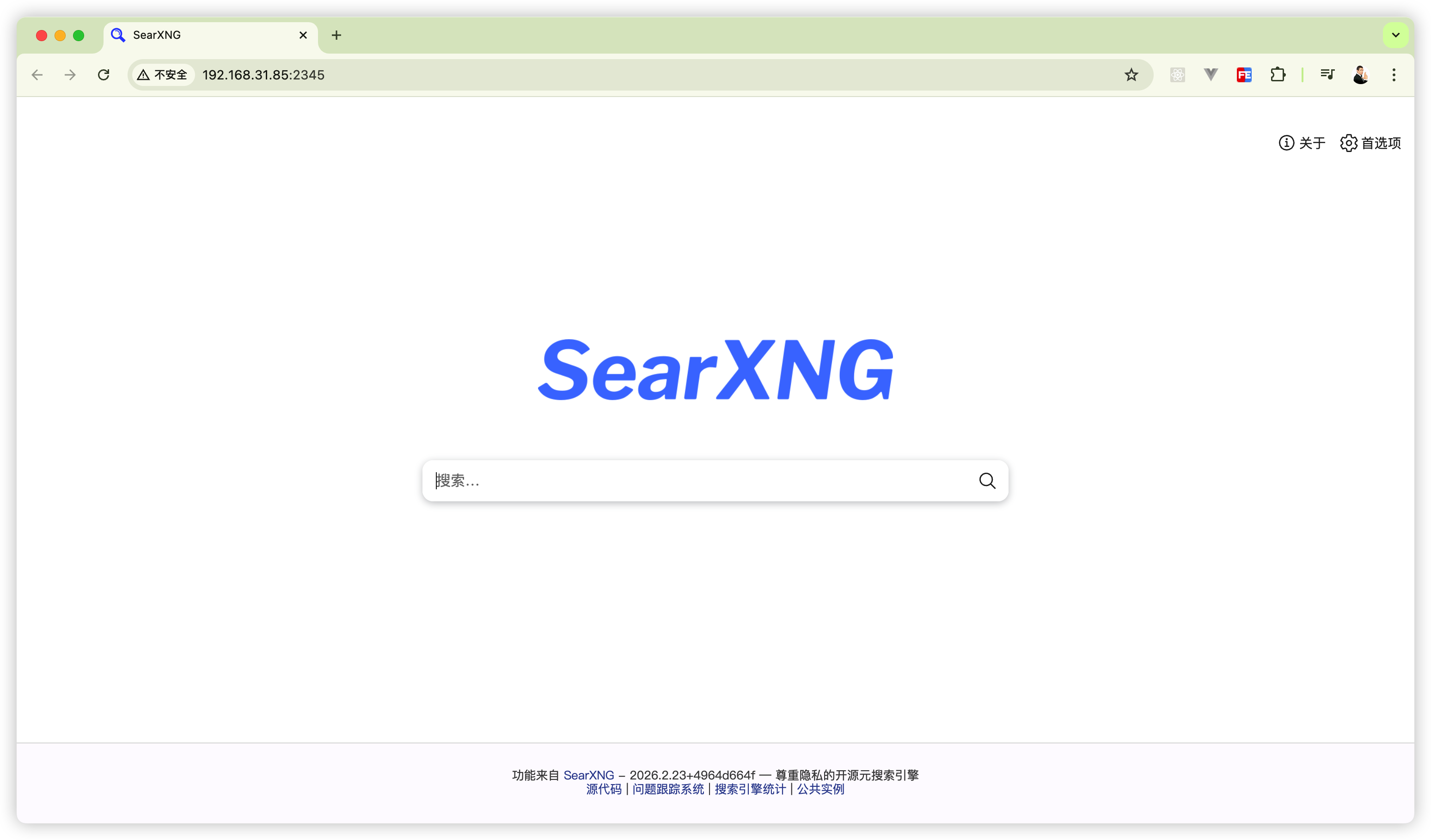 在电脑浏览器中输入NAS_IP:2345,即可打开 SearXNG 搜索界面。