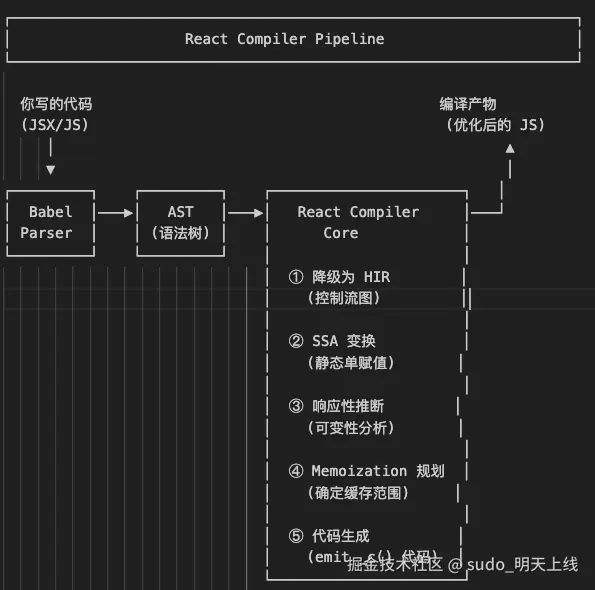 React Compiler是一个构建时工具,它在编译阶段自动分析你的组件代码,注入 memoization 逻辑。
