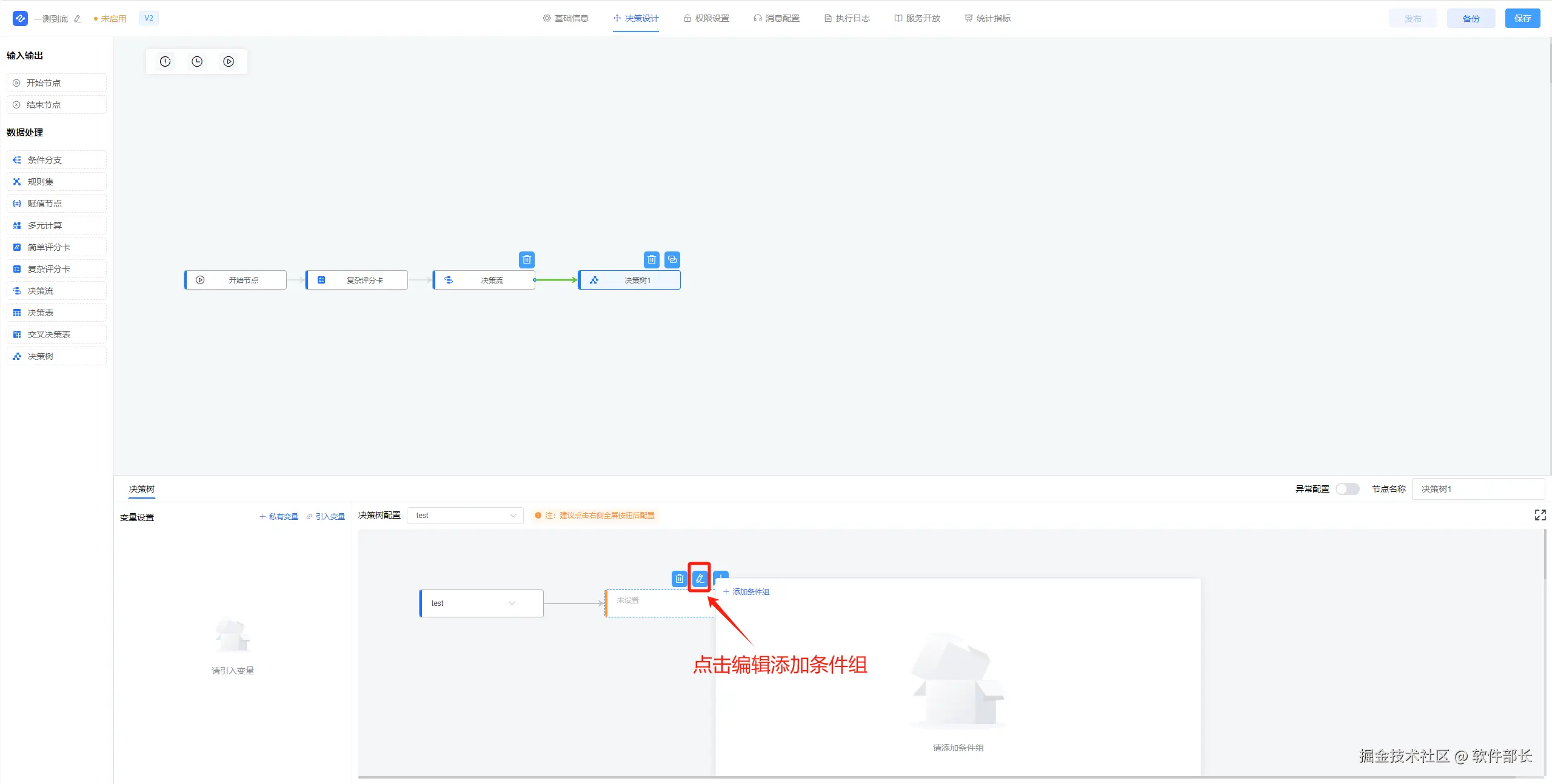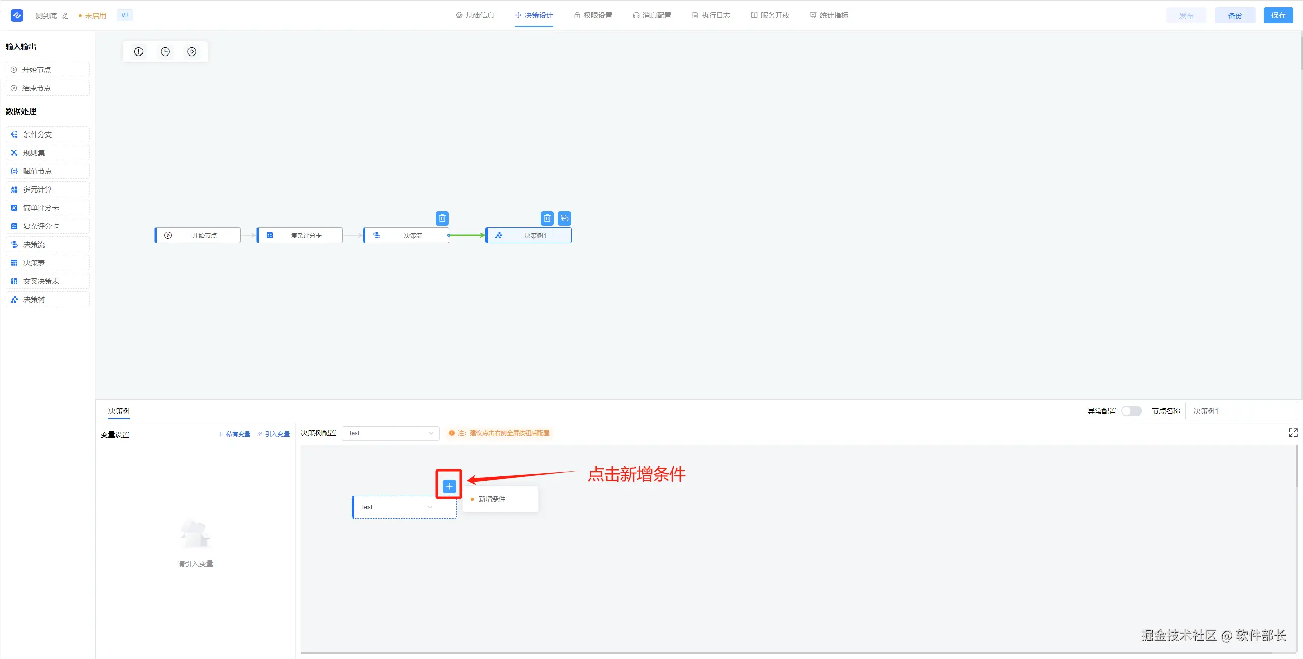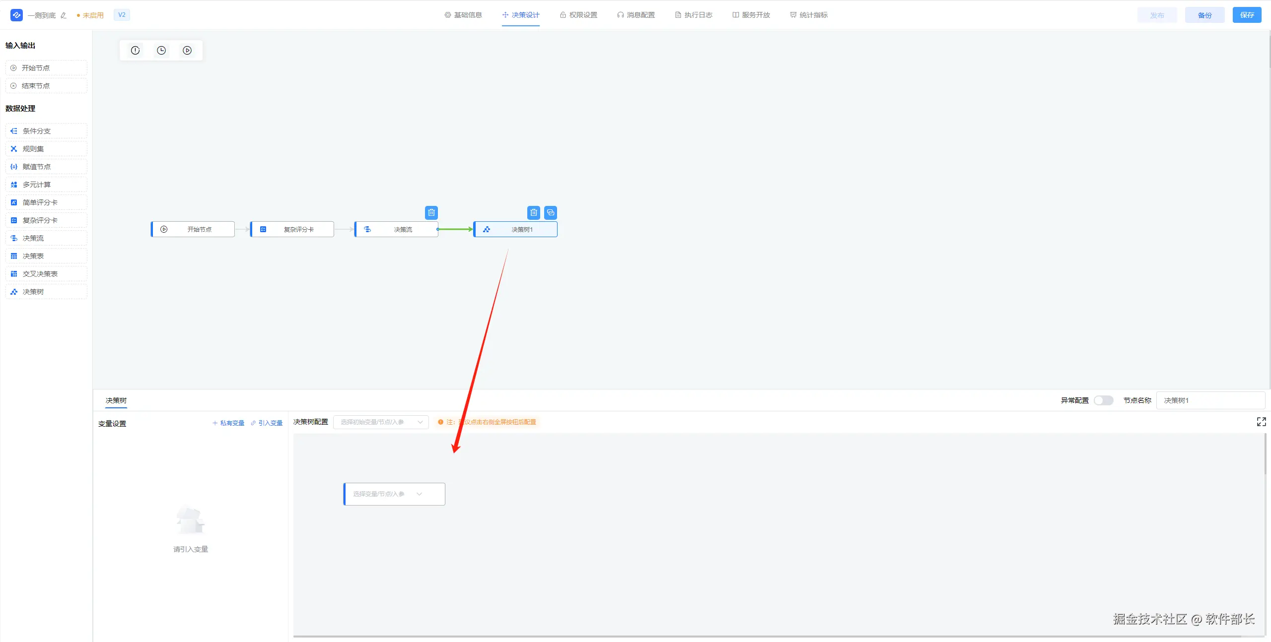2、点击决策树,进入决策树配置