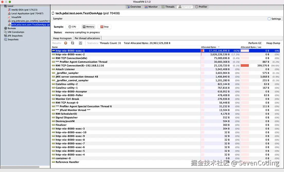VisualVM 是一款免费的,集成了多个 JDK 命令行工具的可视化工具,它能为您提供强大的分析能力,对 Java 应用程序做性能分析和调优。这些功能包括生成和分析海量数据、跟踪内存泄漏、监控垃圾回收器、执行内存和 CPU 分析,同时它还支持在 MBeans 上进行浏览和操作。
