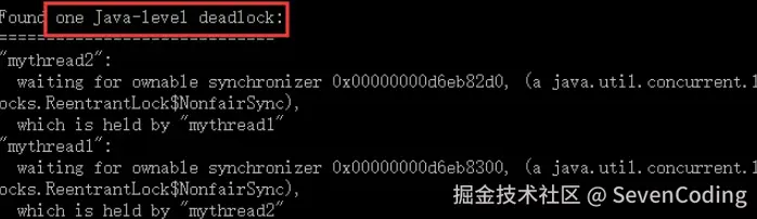 “mythread2”的堆栈信息中可以看出当前线程持有“0x00000000d6eb8300”锁,等待“0x00000000d6eb82d0”的锁。