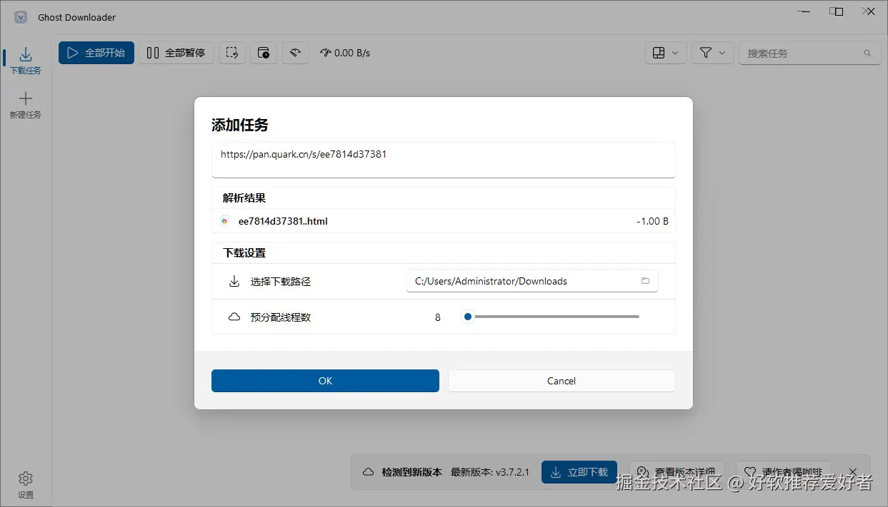Ghost Downloader v3.7.2 绿色版作为免费的多线程下载工具,凭借稳定的性能、便捷的操作与实用的配套功能,成为日常高效下载的优质选择。