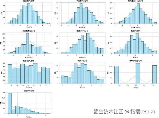 首先,我们对数据进行了初步的“体检”。下图展示了各参数的分布情况。