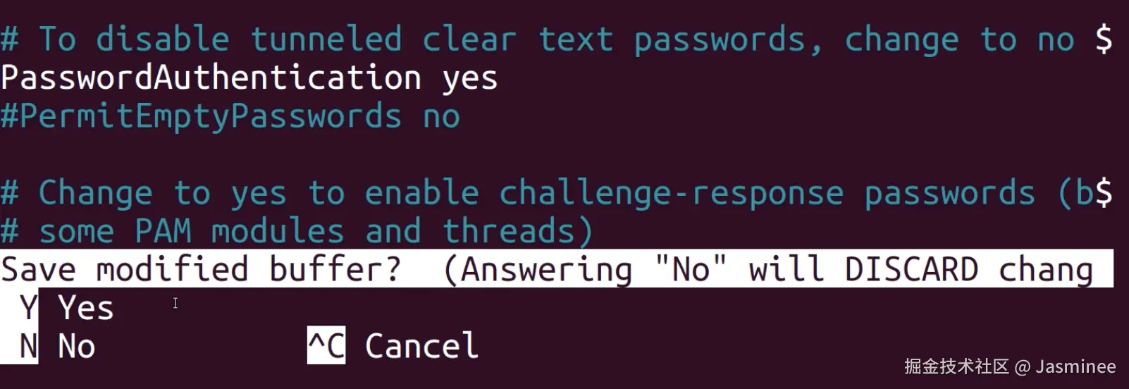 PermitRootLogin yes(允许 root 远程登录);PasswordAuthentication yes(允许密码认证)