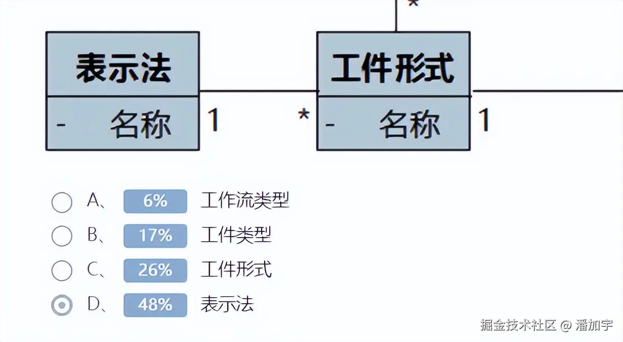 答对的人不到一半。问哪个类,应该问的问题是“UML序列图是一个什么”,回答“是一个表示法”。