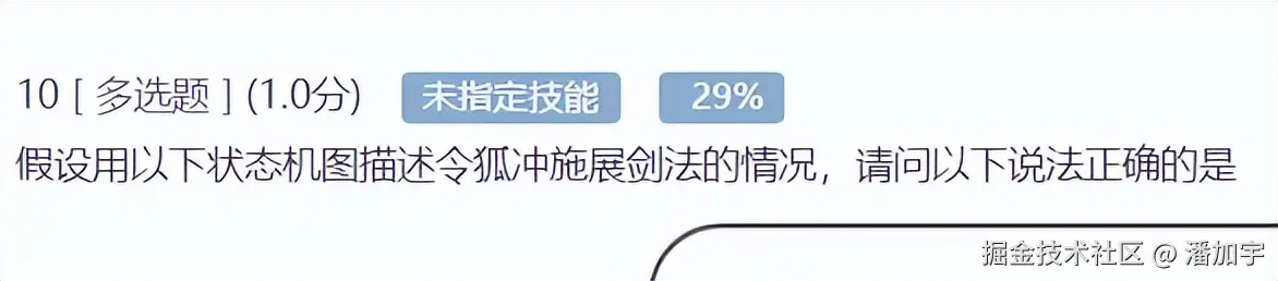 10 [ 多选题 ]假设用以下状态机图描述令狐冲施展剑法的情况,请问以下说法正确的是