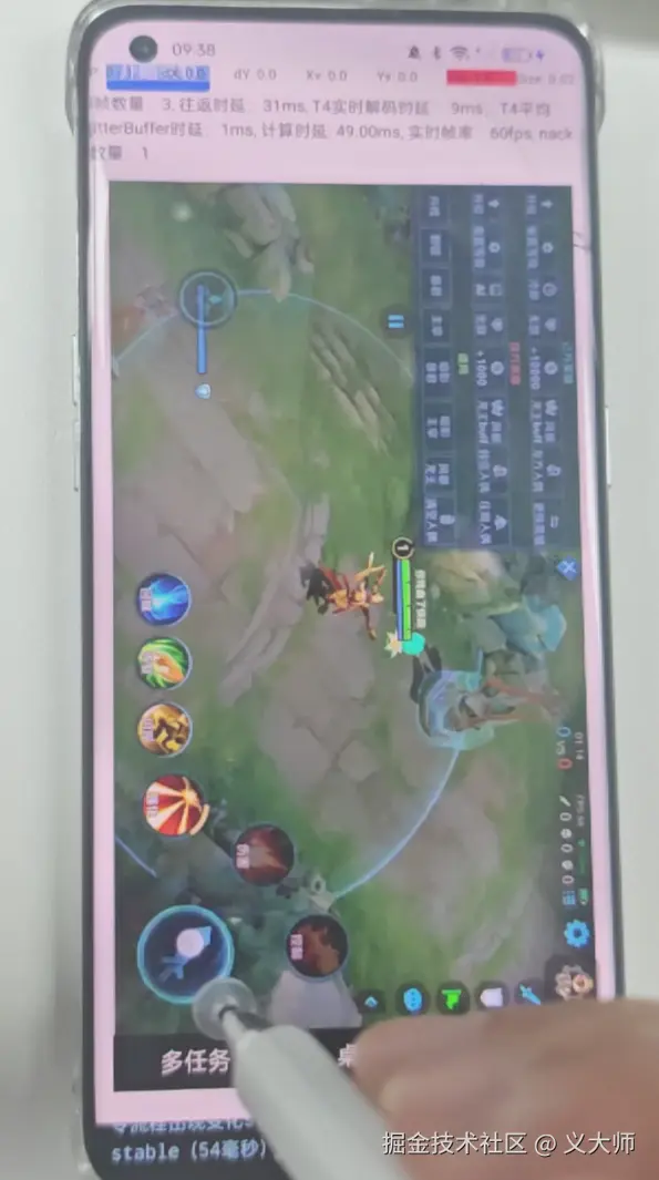 一开始为了避免第三方程序(王者荣耀)的影响,我在桌面先进行了多轮的物理机响应到云手机响应的时延测试,但在进行时延统计的时候发现如果在桌面程序放置一个时钟悬浮窗,会导致桌面程序帧率降至10fps。导致了时延很混乱,波动很大,后面为了保持帧率的稳定,继续使用了王者荣耀来做持续测试。这里也推断出来了云机的帧率会对时延造成直接影响