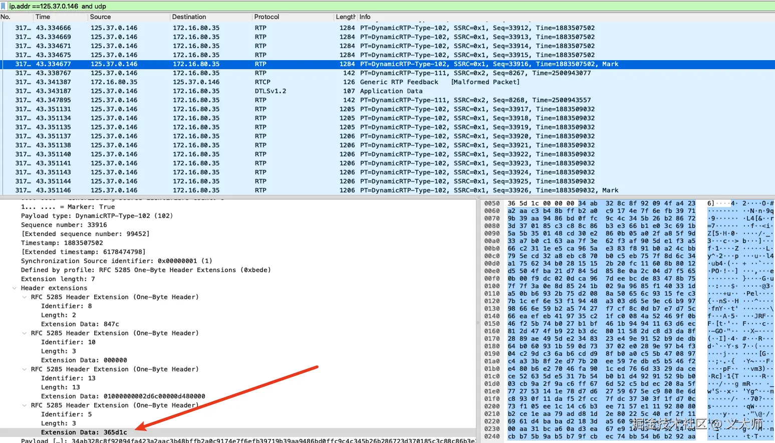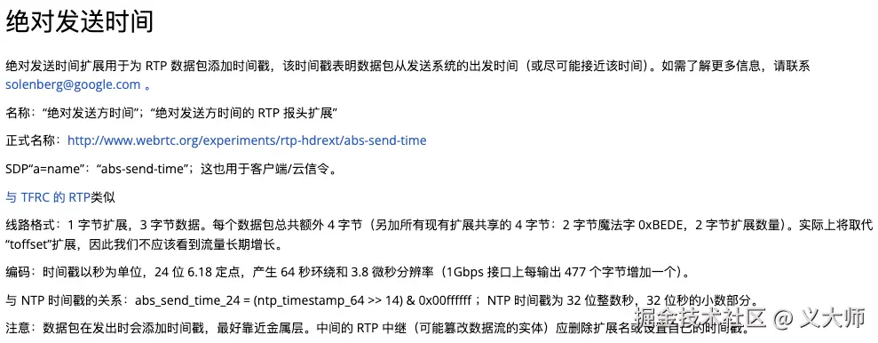 这个拓展会携带1个时间戳,表明数据包从发送系统的出发时间(或尽可能接近该时间)。我们取一个rtp包的时间戳来作为分析