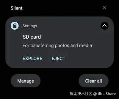 传输完成后,请前往 Google 文件管理器的 SD 卡部分,确保照片已存储在那里。