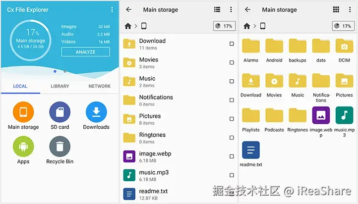 Cx 文件管理器是一款功能强大且用户友好的文件管理器,可轻松将照片传输到 SD 卡。它因其简洁的用户界面和“存储分析”功能而广受欢迎。