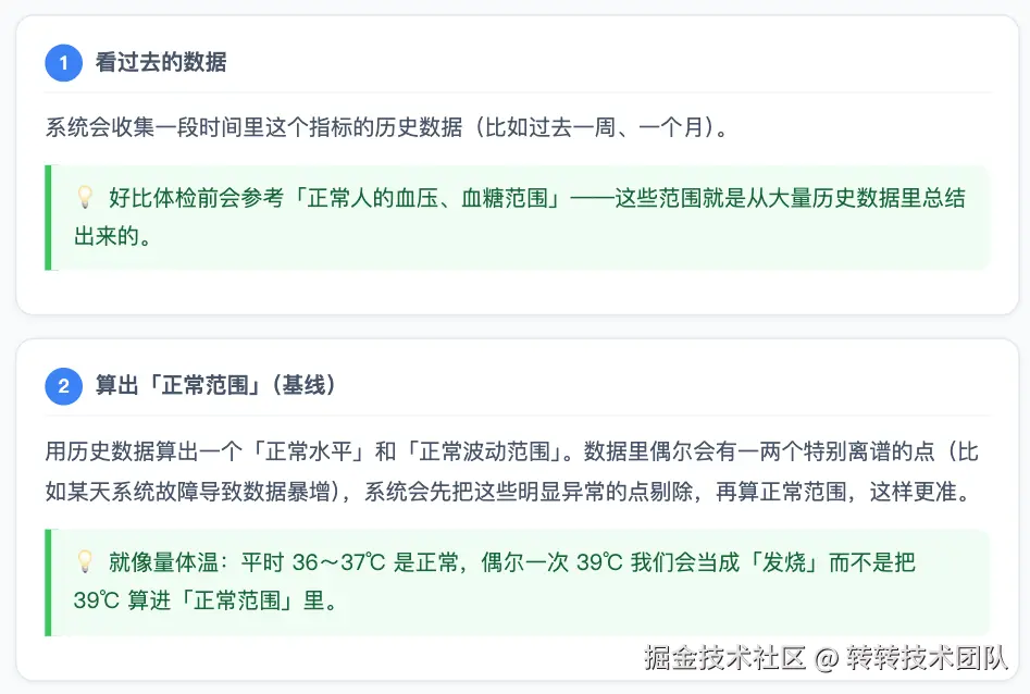 接下来用大白话讲清楚:系统怎么知道「出问题了」并发出告警。