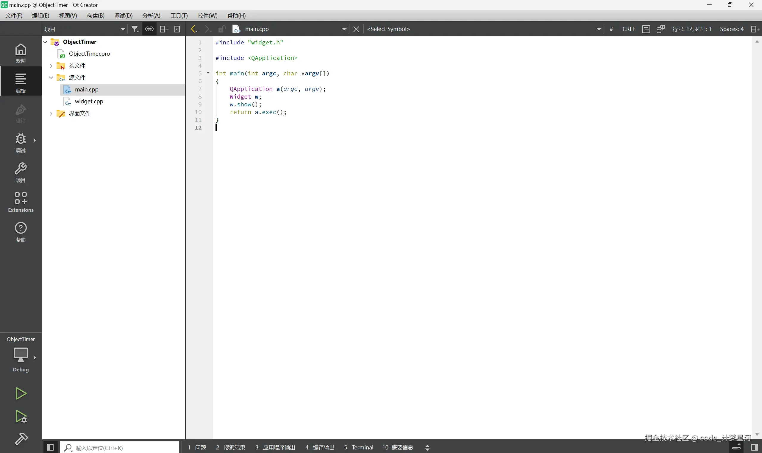 命名为ObjectTimer,选择qmake编译,QWiget类