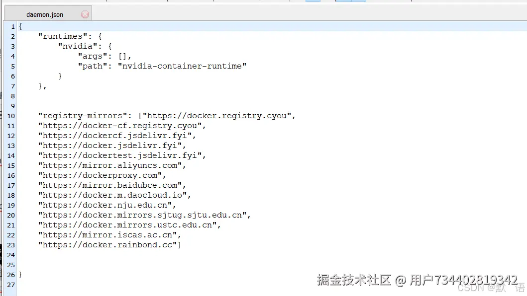 编辑Docker的配置文件 /etc/docker/daemon.json,添加或修改如下内容,以使用国内的镜像加速器: