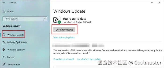 为了尽可能简化流程,请确保您的电脑已更新至最新版本并关联了 Microsoft 帐户。您可以点击电脑上的 “开始”菜单 > “设置” > “更新和安全” > “检查更新” 来下载并安装新更新。