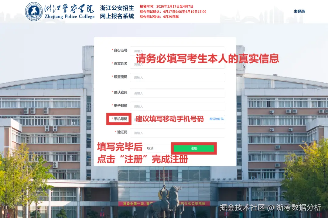 旨在精准服务2026届浙江考生,引导其顺利完成浙江警察学院2026年“三位一体”综合评价招生的网上报名工作,现将有关报名攻略摘录如下: