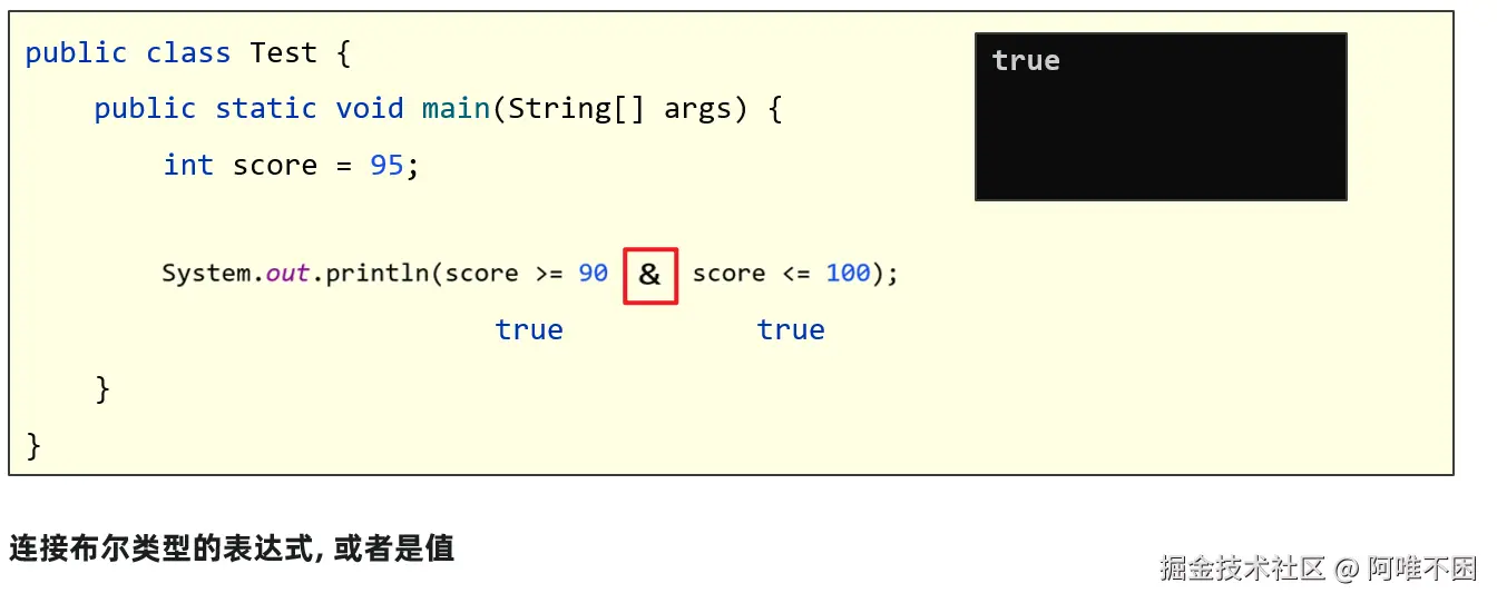 介绍 : 把多个条件放在一起运算,最终返回布尔类型的值:true、false
