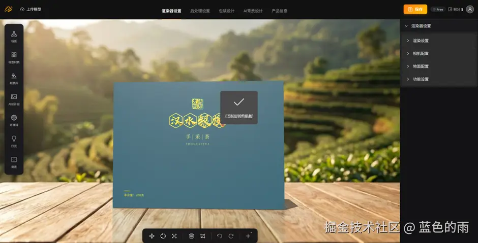 - 地面阴影:渲染产品投影,支持透明地面与自定义阴影颜色。