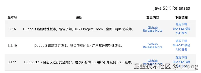 截止2026.3.17 Dubbo官方推荐的最稳定版本,分别是 3.1.11、3.2.19、3.3.6。因此目标版本如上。 不过在升级到这些稳定版本之前,有一些注意事项需要关注。
