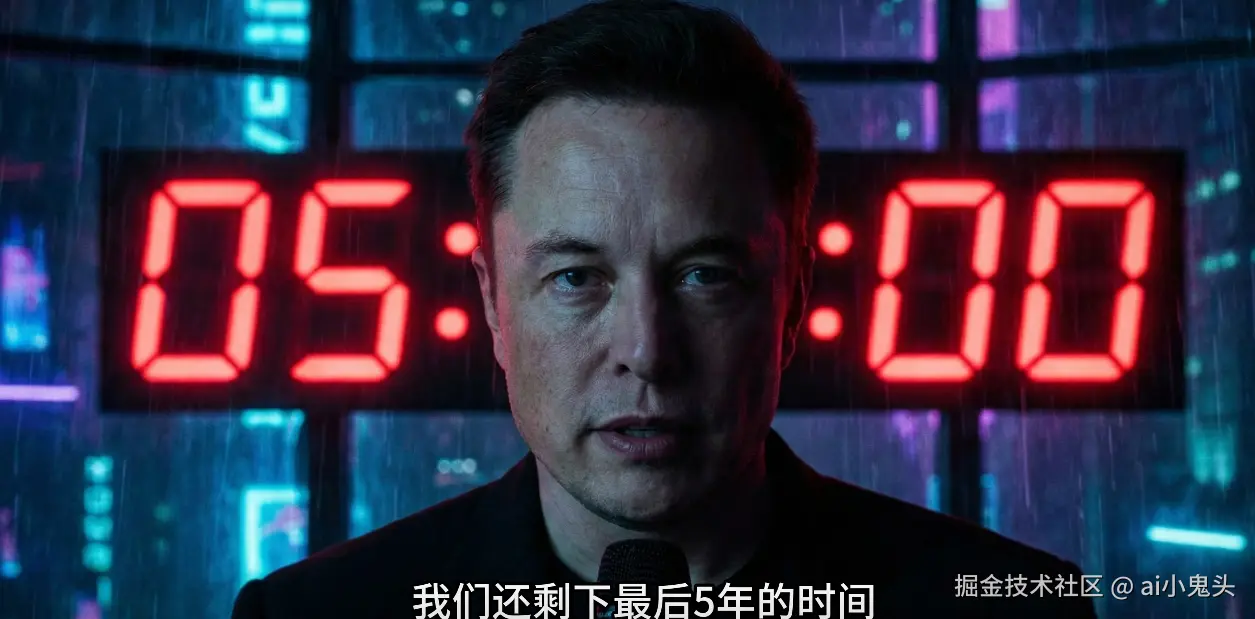 各位掘友,最近刷到一个很有冲击力的视频,UP主“熊哥”结合马斯克多次预言,直击痛点:“人类翻身机会只剩最后5年,2030年后上升通道或被AI彻底。”