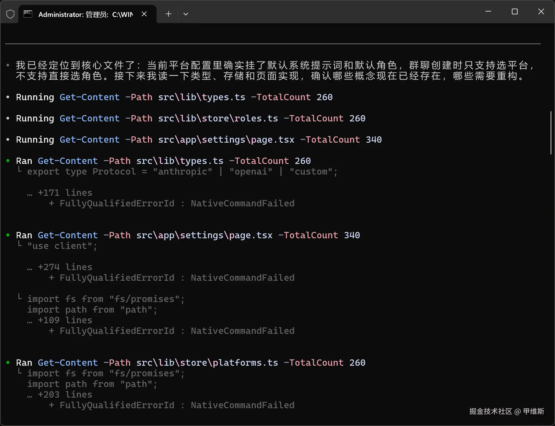 但是 GPT5.4 似乎没有这个想法,它完全没有要询问我的意思,而是直接说它准备干什么了