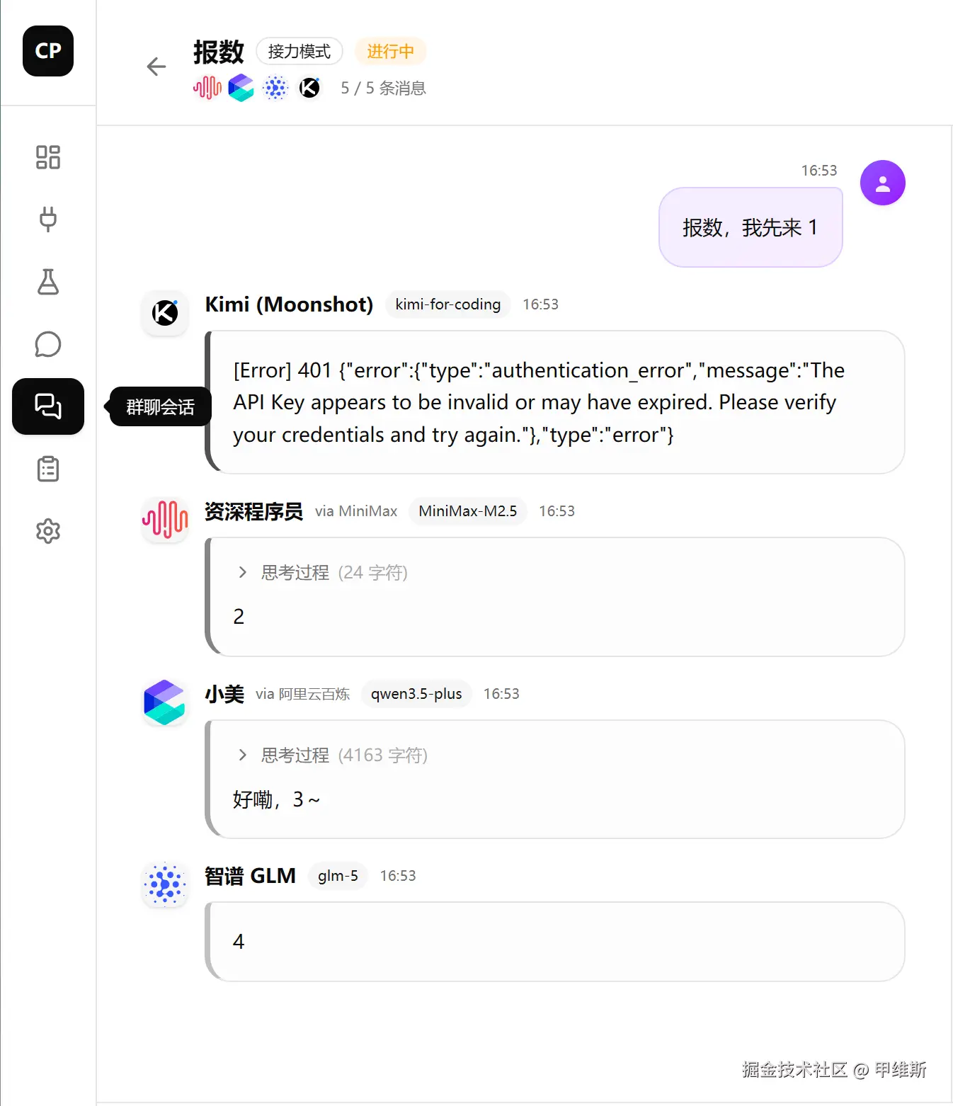 3. 同模型多角色:是否允许同一个模型被多个角色使用?比如"严谨学者"和"搞笑段子手"都绑定 GPT-4o,在同一个群聊里同时出现?