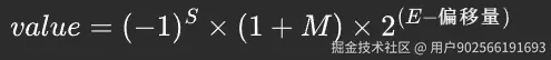 所有符合IEEE 754 标准的浮点数,最终值都按以下公式进行计算: