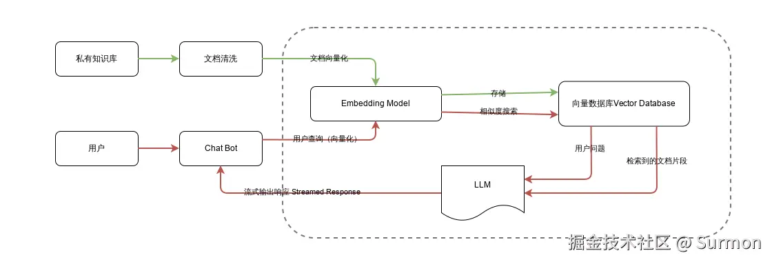 常见的 RAG 流程,大概可以分为两部分:
