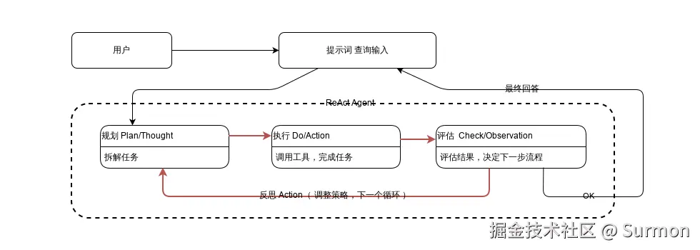 - 反思(Act/Next Thought):基于评估结果,决定是结束任务,还是调整策略进入下一个循环。