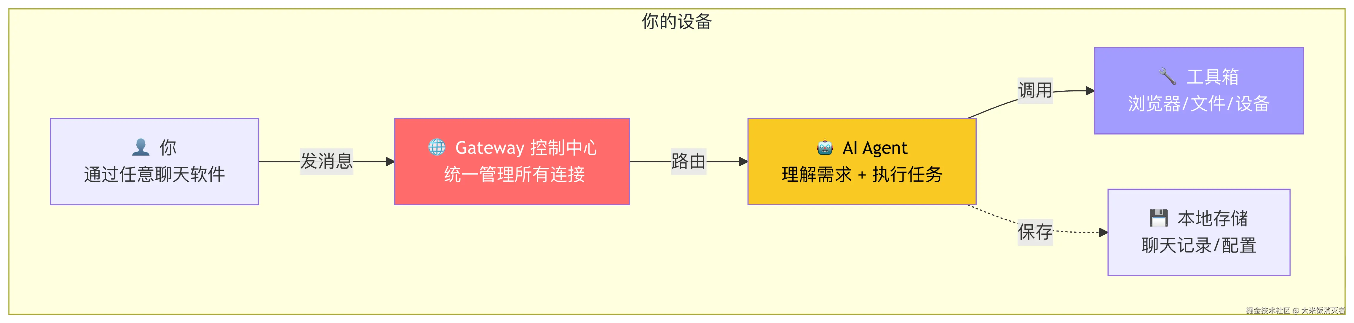 OpenClaw 是一个运行在你自己电脑上的 AI 助手平台,它可以: