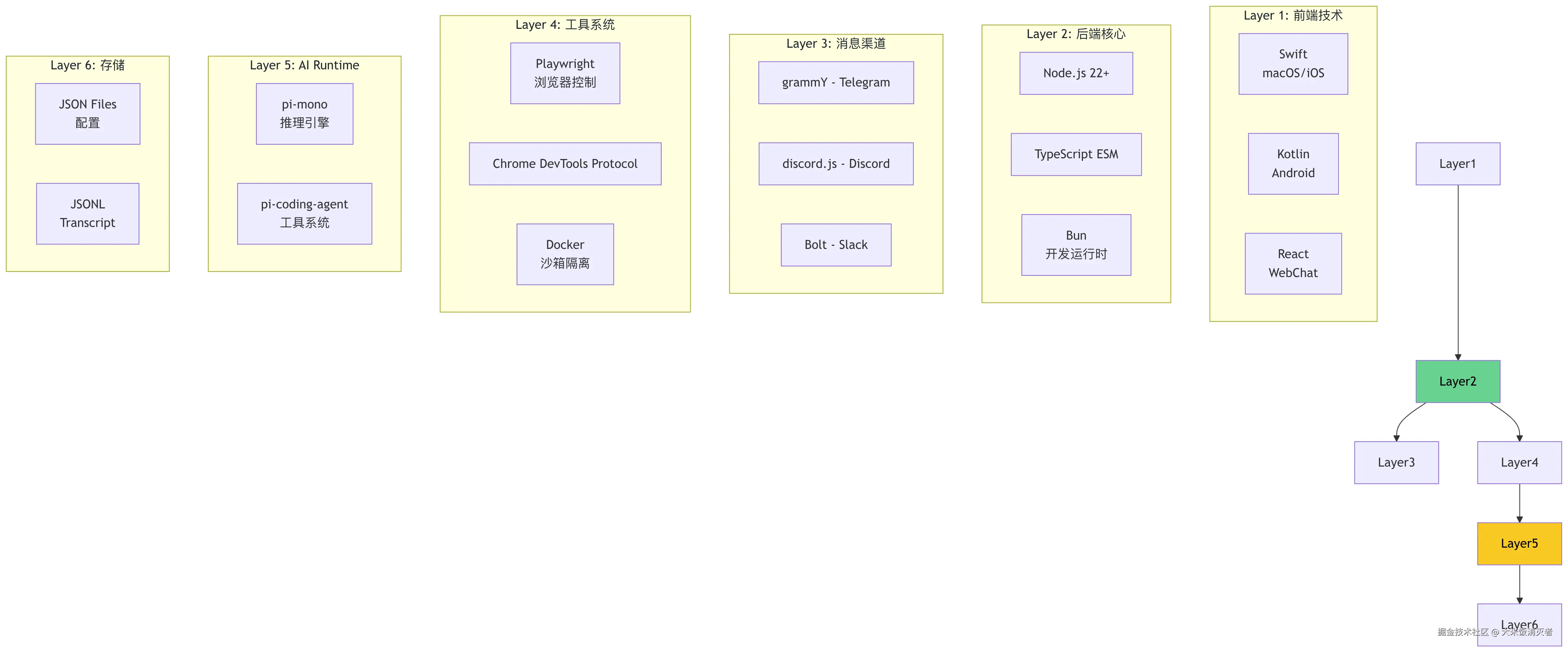 | AI 引擎 | pi-mono | LLM 推理 | src/acp/runtime/ |