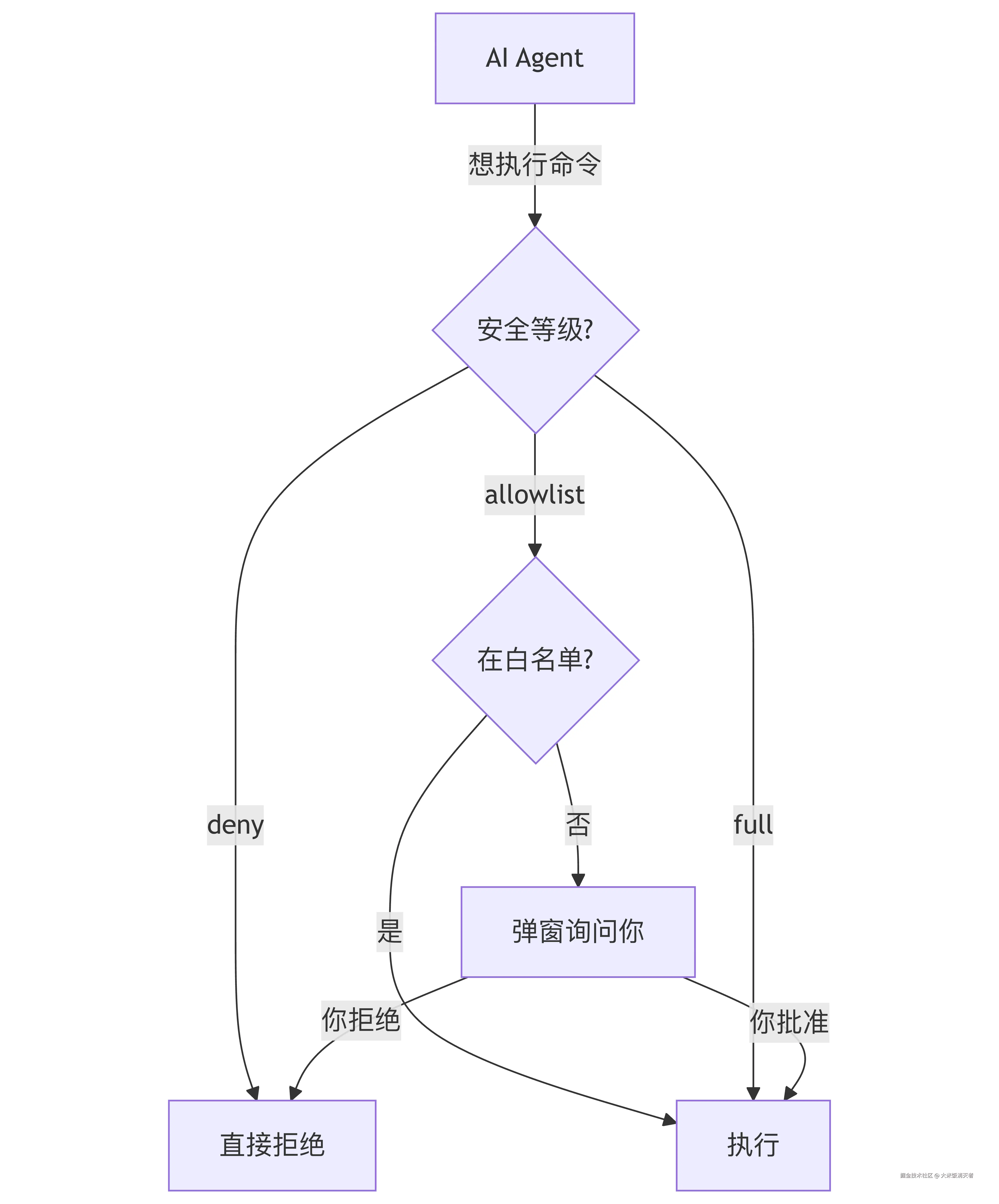 原理:AI 想执行危险命令时,必须先征得你的同意。