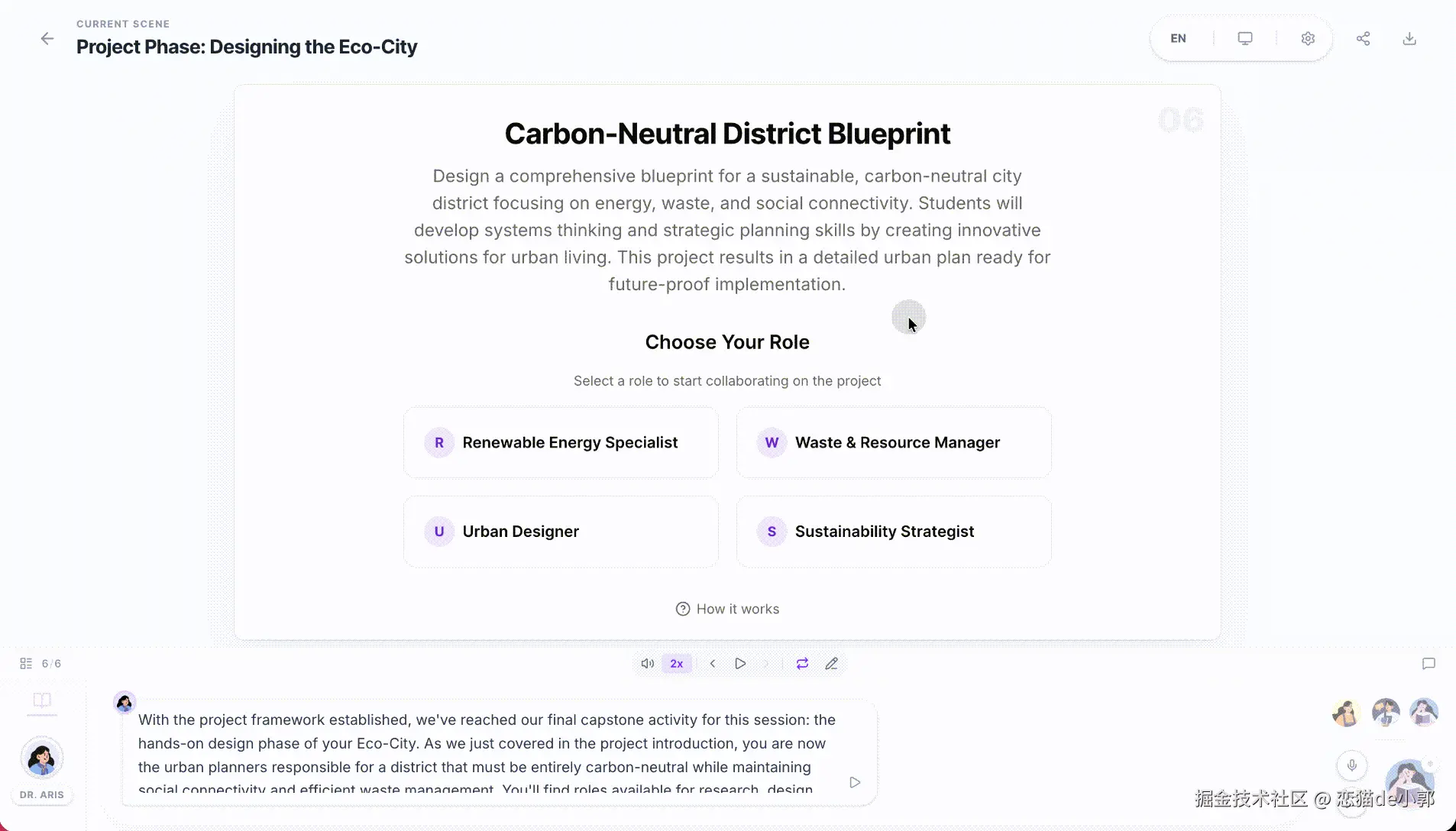 - 项目模式学习: 选择一个角色,和 AI 智能体协作完成结构化项目,包含里程碑和交付