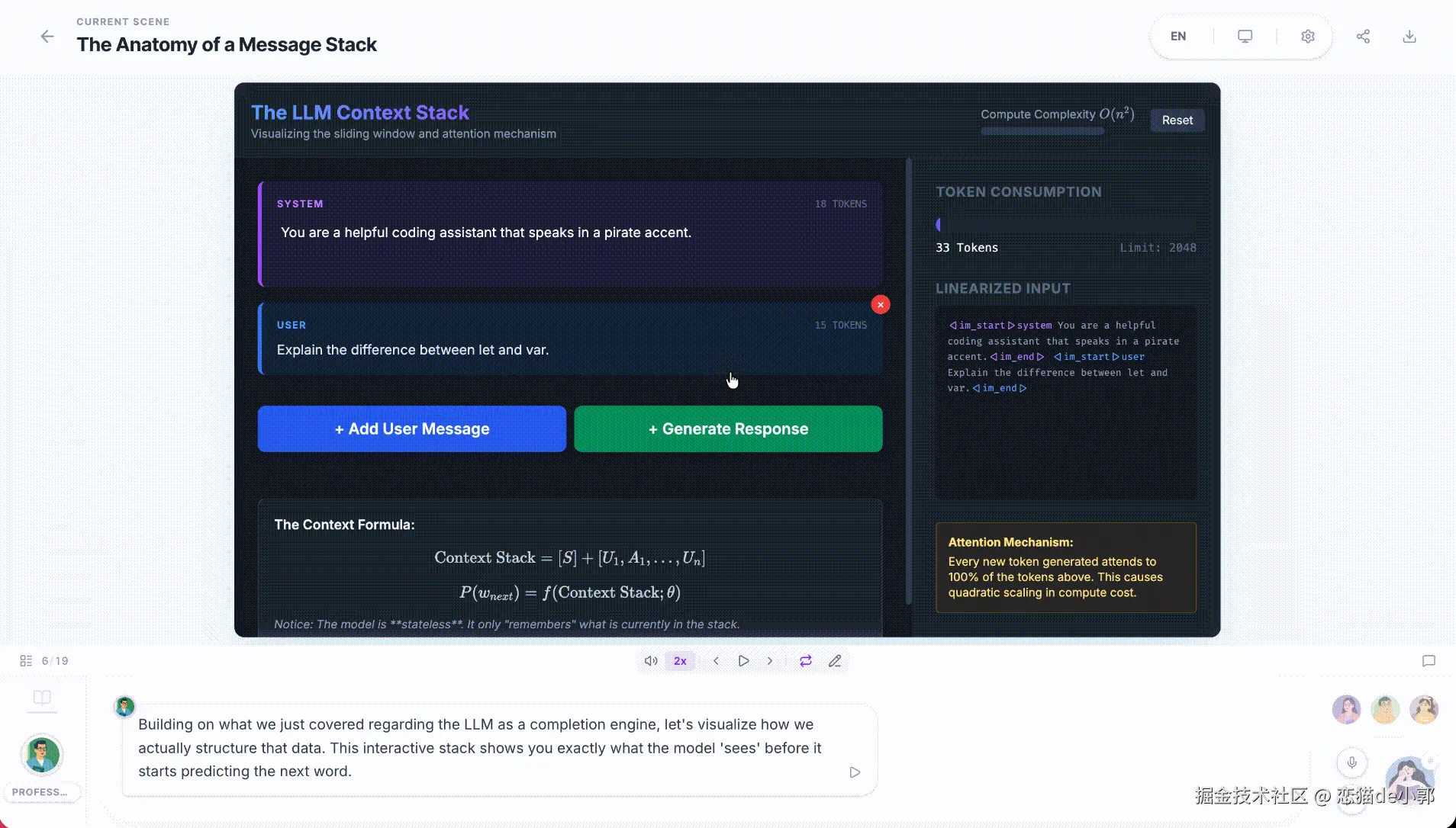 这里核心之一是两阶段生成流程,对应了课堂内容的结构化: