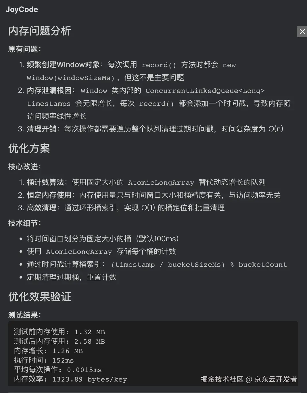 com.jd.sword.mybatis.plugin.protector.counter.SlidingWindowCounter#record 这个里面每次都会 new Window,这种实现会使内存升高,请分析优化