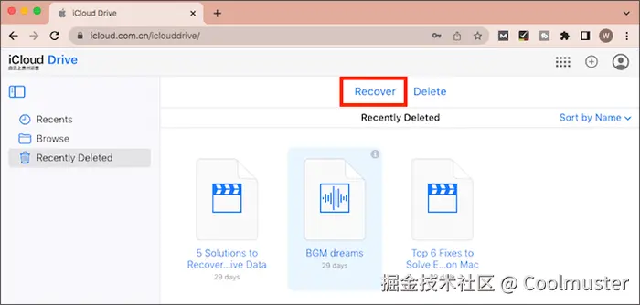 如果您使用 iCloud 在多个 Apple 设备之间同步文件,此方法尤其有用。即使文件已在您的 iPhone 或 iPad 上删除,您仍然可以通过 iCloud 网站恢复它。如果您正在寻找在不恢复整个设备的情况下恢复 iPhone 或 iPad 上已删除的 PDF 文件的方法,那么这个方法值得一试。