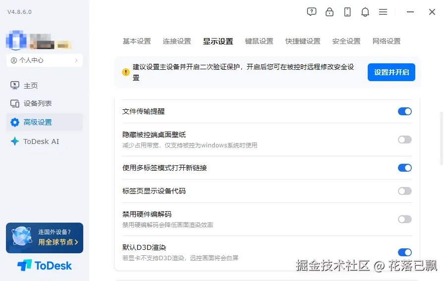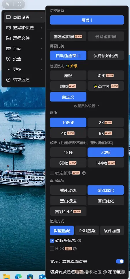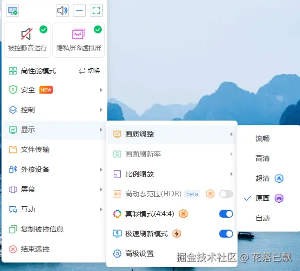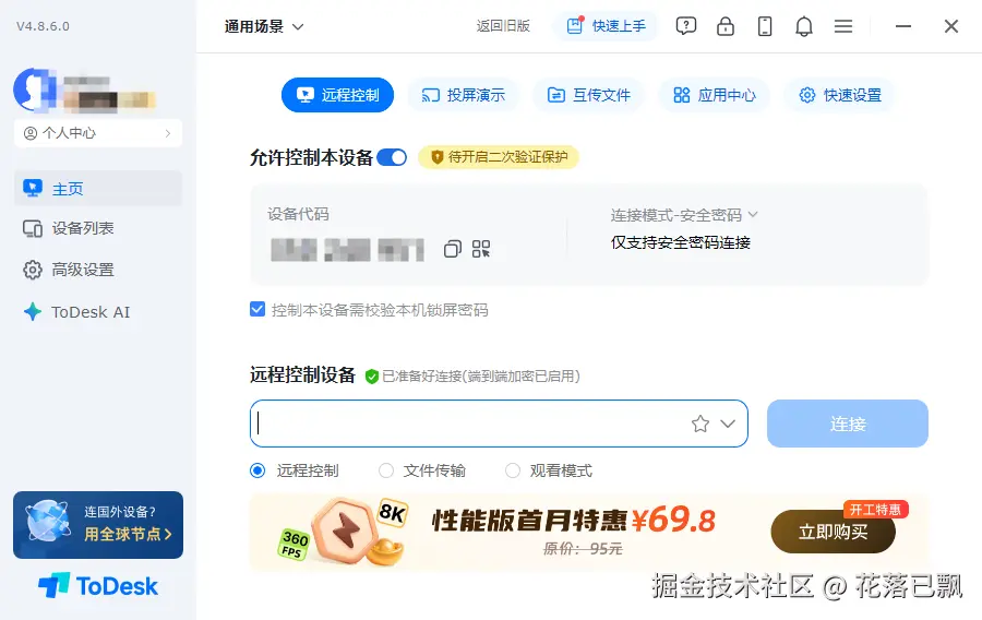 特别是高配置环境下,ToDesk最高可支持8K 360帧的高清晰原画,是ToDesk超越其他远控的优势之一。