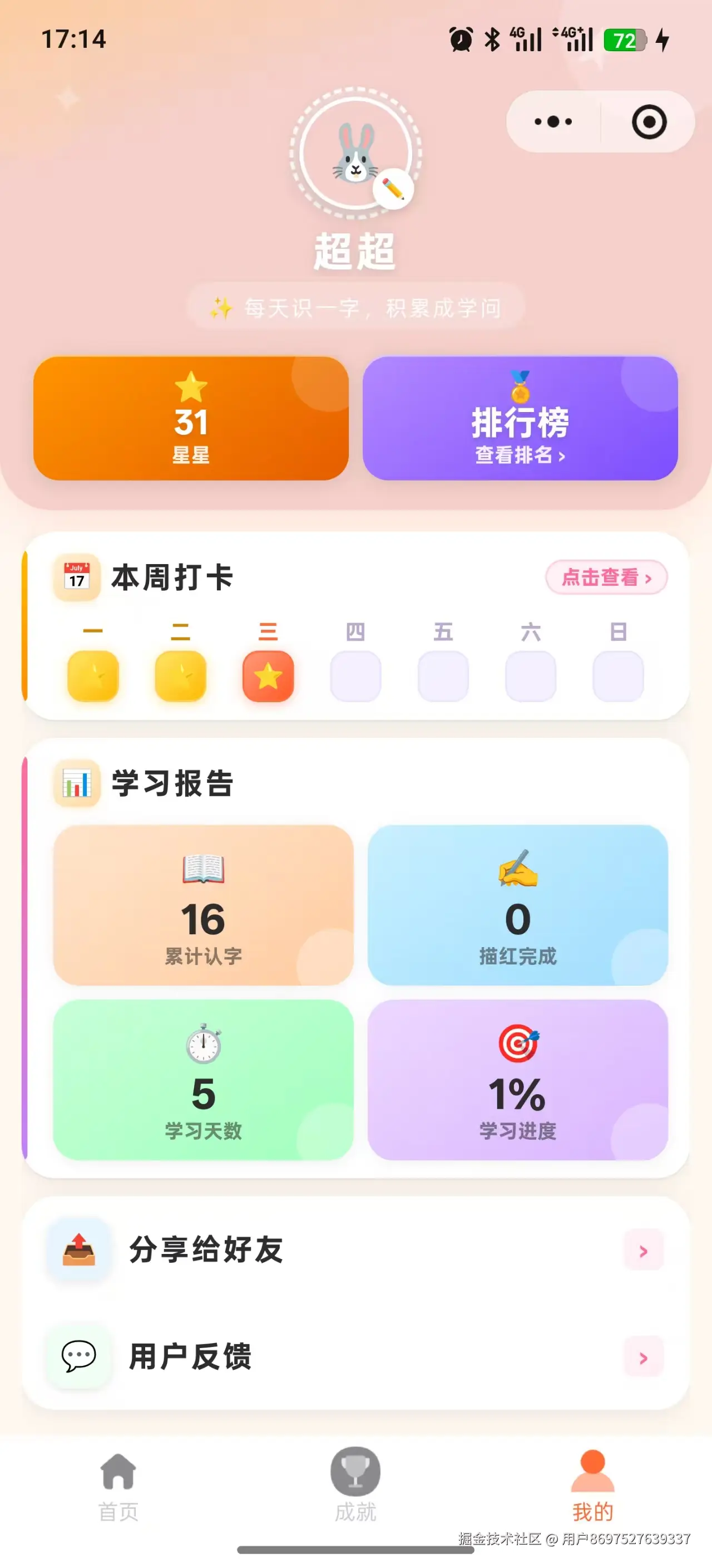 今天给大家分享我完全用 AI 辅助开发的小程序——认字鸭,一个专为儿童设计的汉字学习工具。