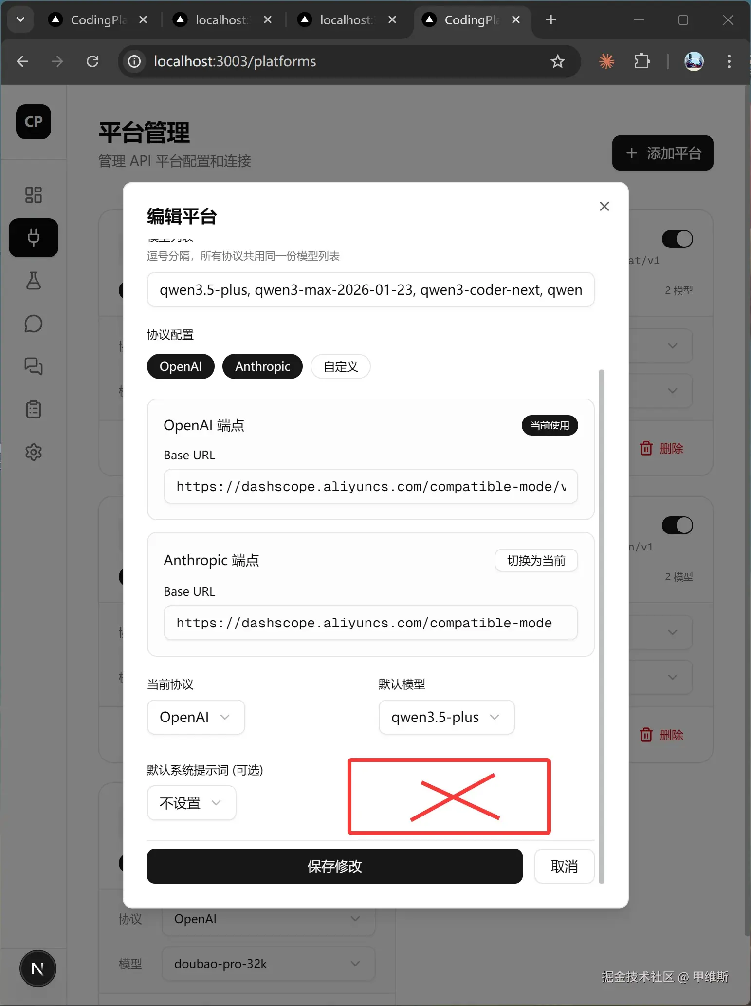 - 可以选平台 → 用平台配置的模型