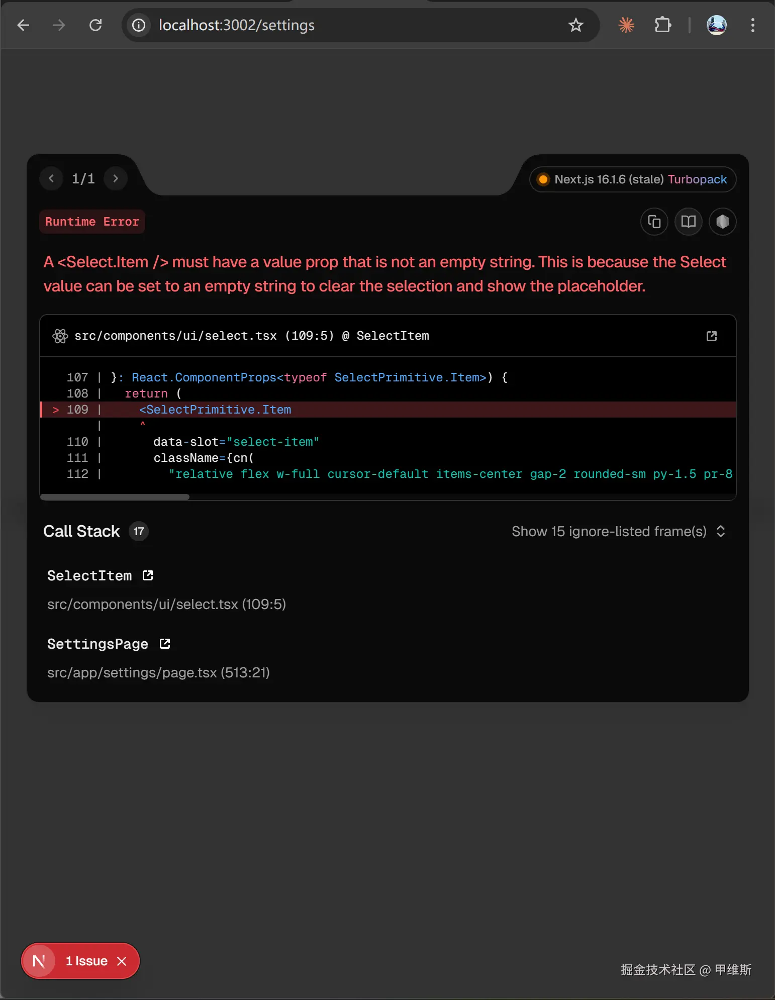 💥直接崩了, 我们先不管错误是什么,反正就是错了。