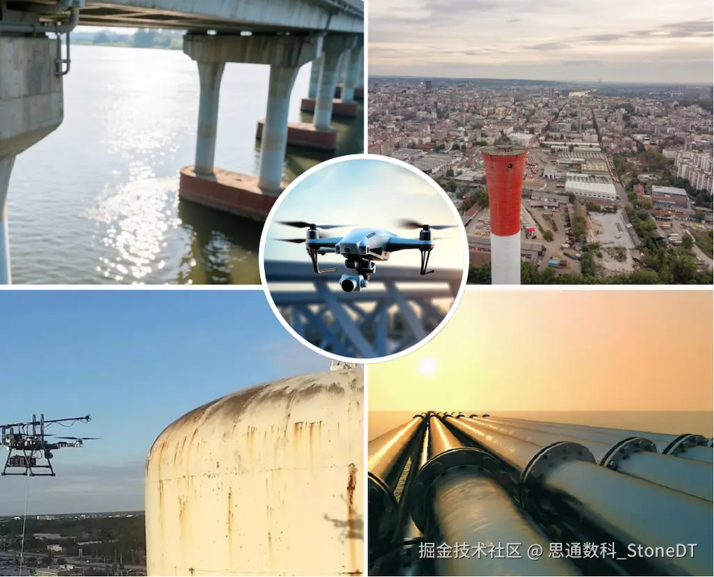 空中端 无人机搭载高清摄像头,从多角度对厂房外墙、烟囱、储罐、高空管道等设备进行监测,精准识别设备腐蚀、泄漏、结构变形等隐患,无需人员进入高危区域,彻底规避作业风险;