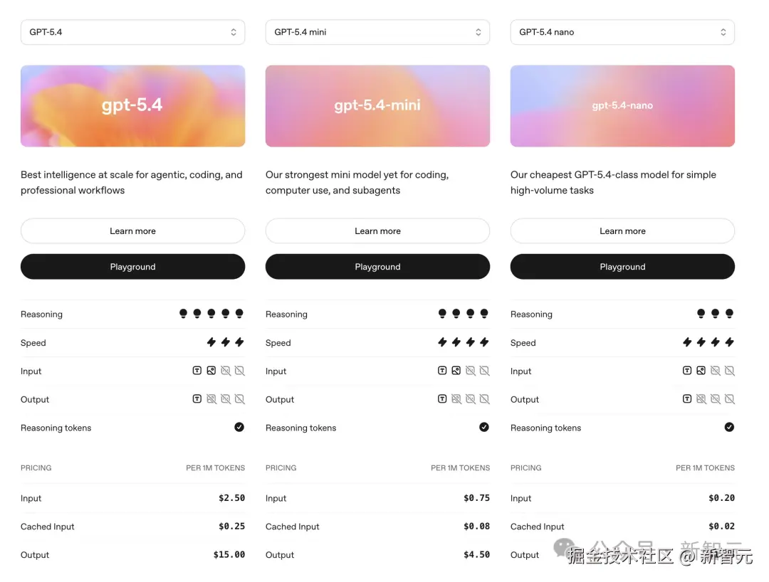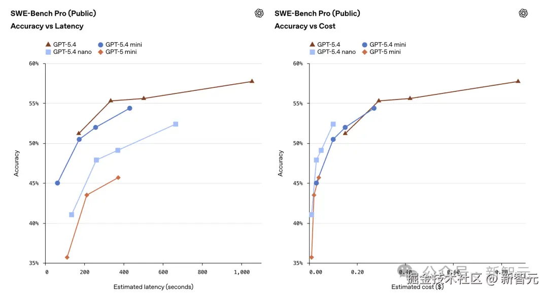 相较于 GPT-5.4,mini 输出价格是其 1/3,而 nano 价格只有 1/12。