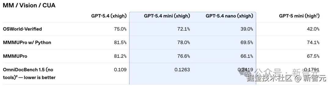 这说明计算机使用任务对模型的视觉推理能力有很高的门槛要求,不是单纯缩小模型就能保住的:mini 和 nano 之间存在一道清晰的能力断层。