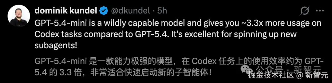 而且 mini 在 Codex 中只消耗 GPT-5.4 配额的 30%。