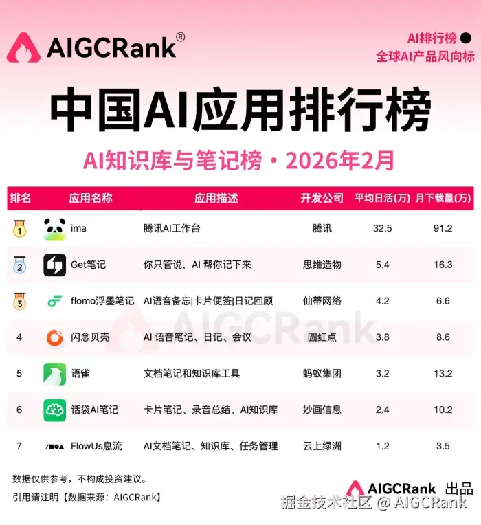 AIGCRank 中国AI应用排行榜·AI知识库与笔记榜