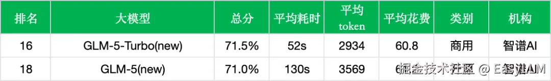- 整体性能基本持平:新版本准确率从71.0%微升至71.5%,提升了0.5个百分点,排名从第18位升至第16位。考虑到GLM-5-Turbo的优化方向是龙虾场景下的工具调用与长链路执行,这一微幅变化在预期之内。