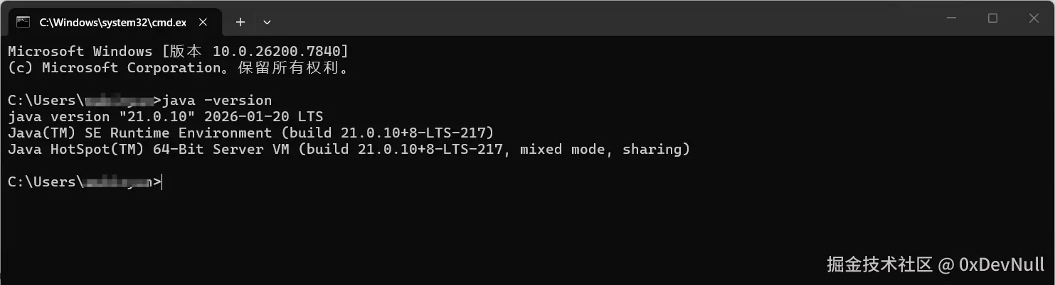 如果显示类似以上信息,包含 "21" 版本号,说明 JDK 21 安装成功!