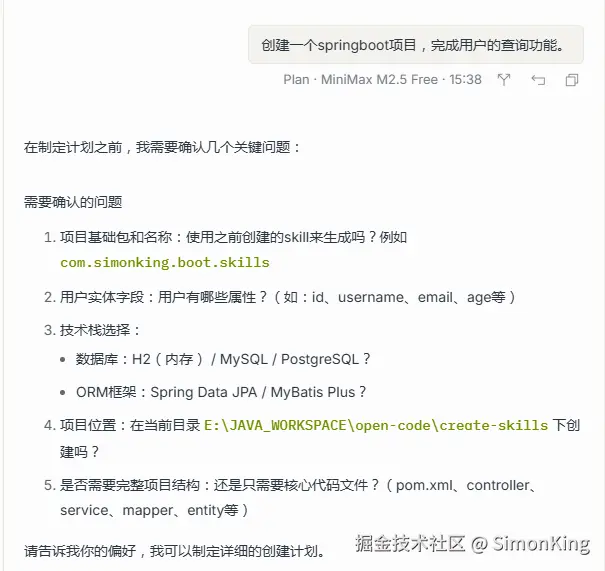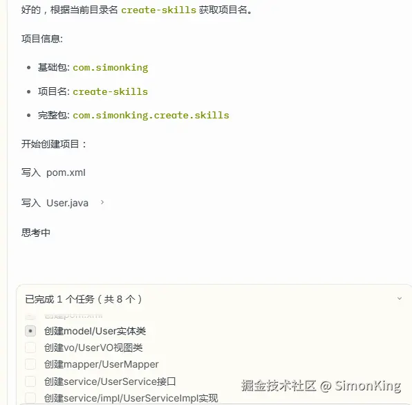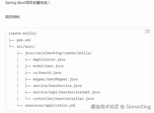 但是,在测试过程中AI怎么知道我的项目结构或者说新创建的类应该放在哪个包下。已有的项目我们可以通过AI理解,新项目就有点无所是从了。由于大部分开发都是团队协作,规范很重要。于是,想通过Skills的方式来规范项目结构。