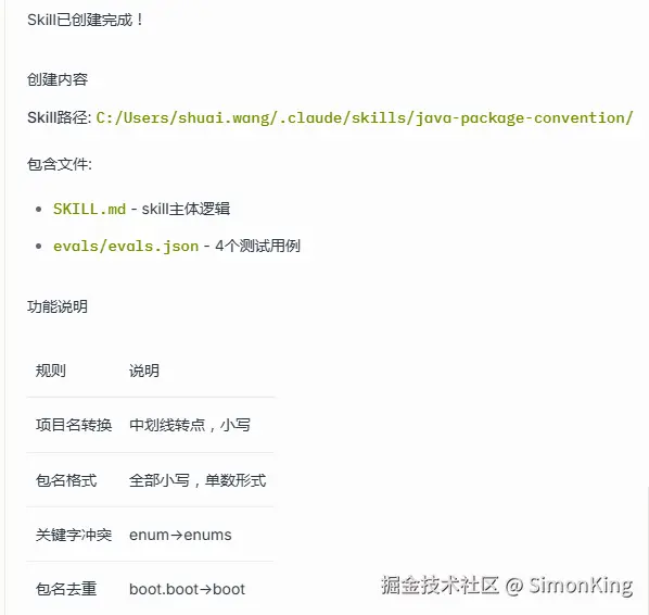 创建的skills名称AI取名为java-package-convention。