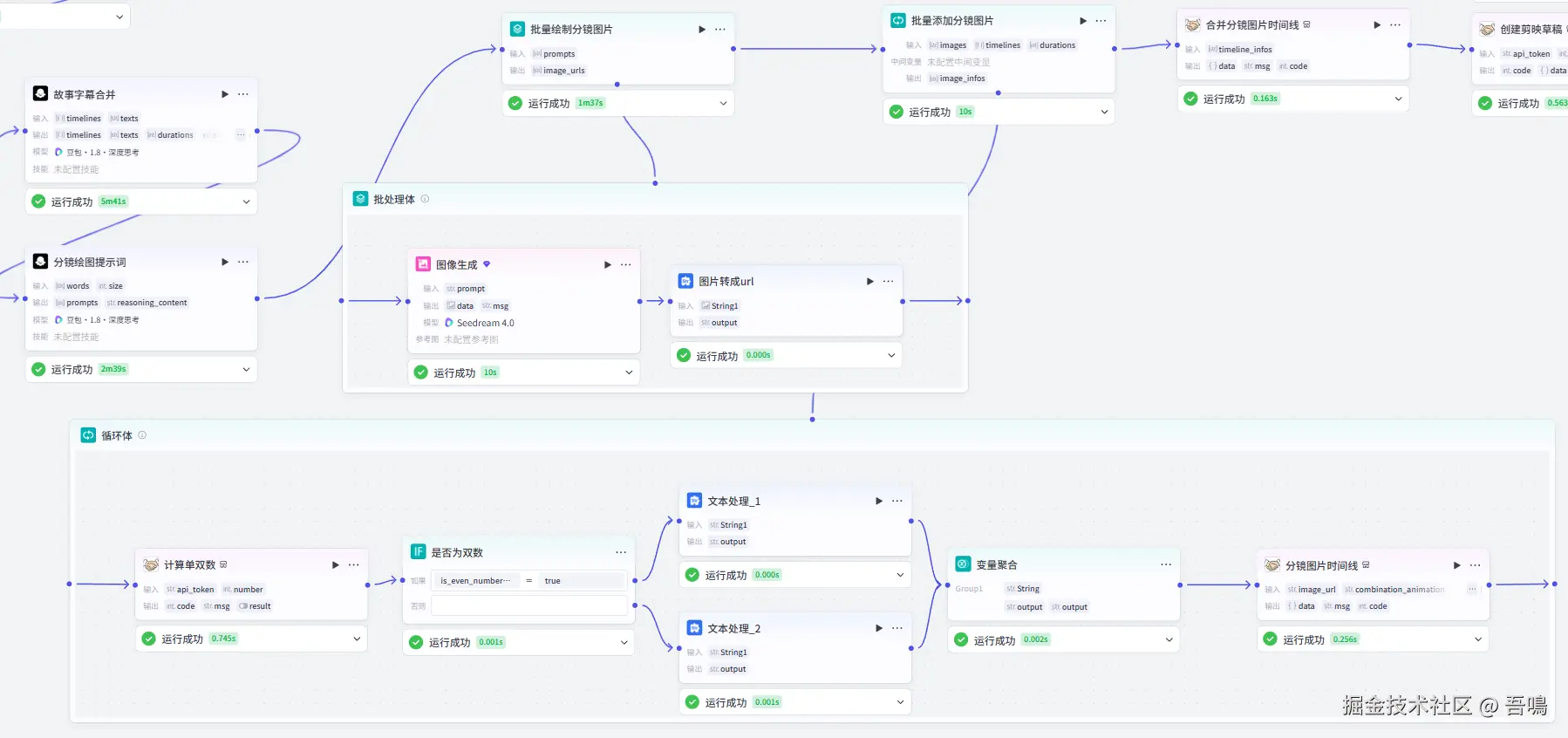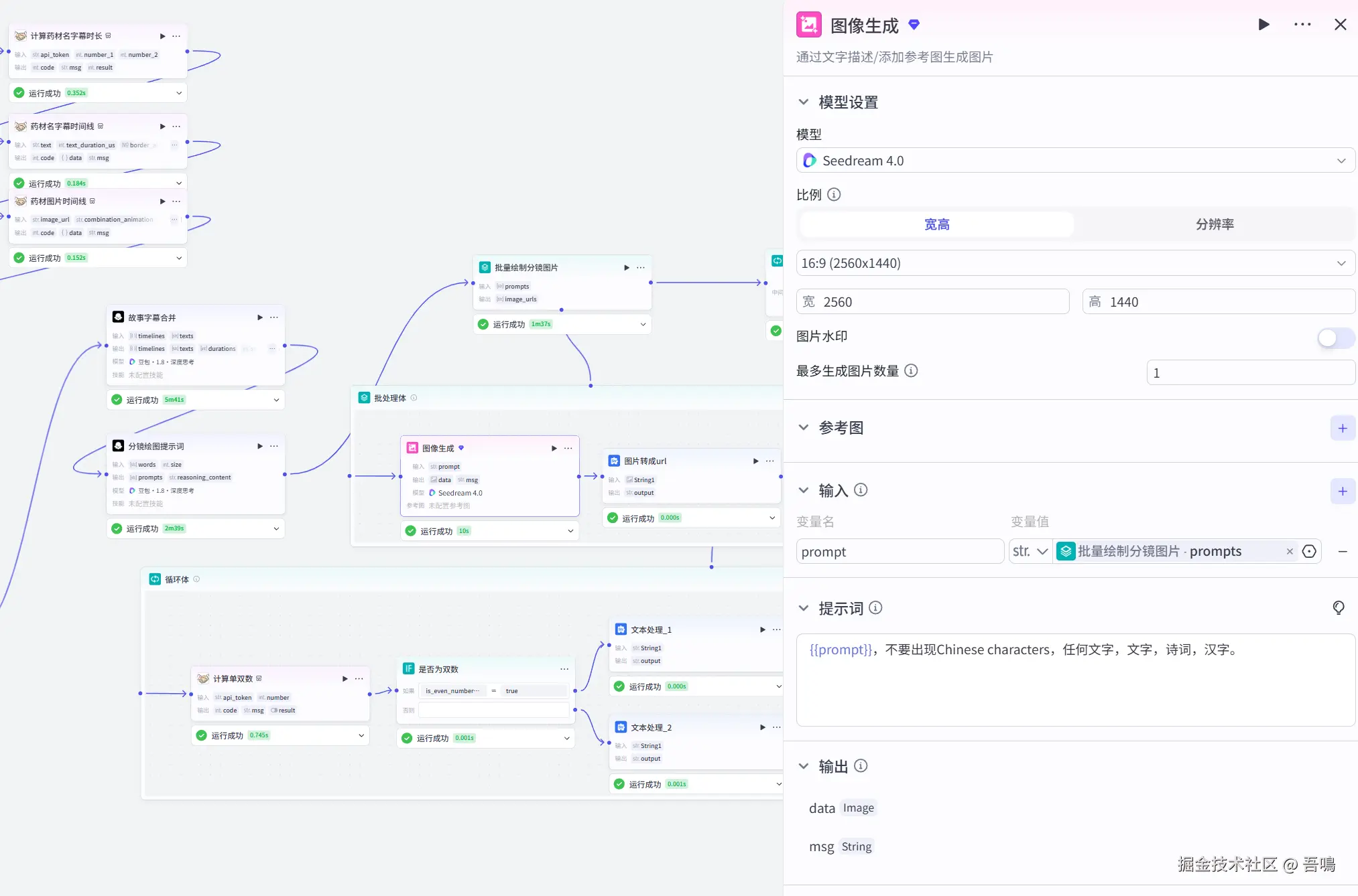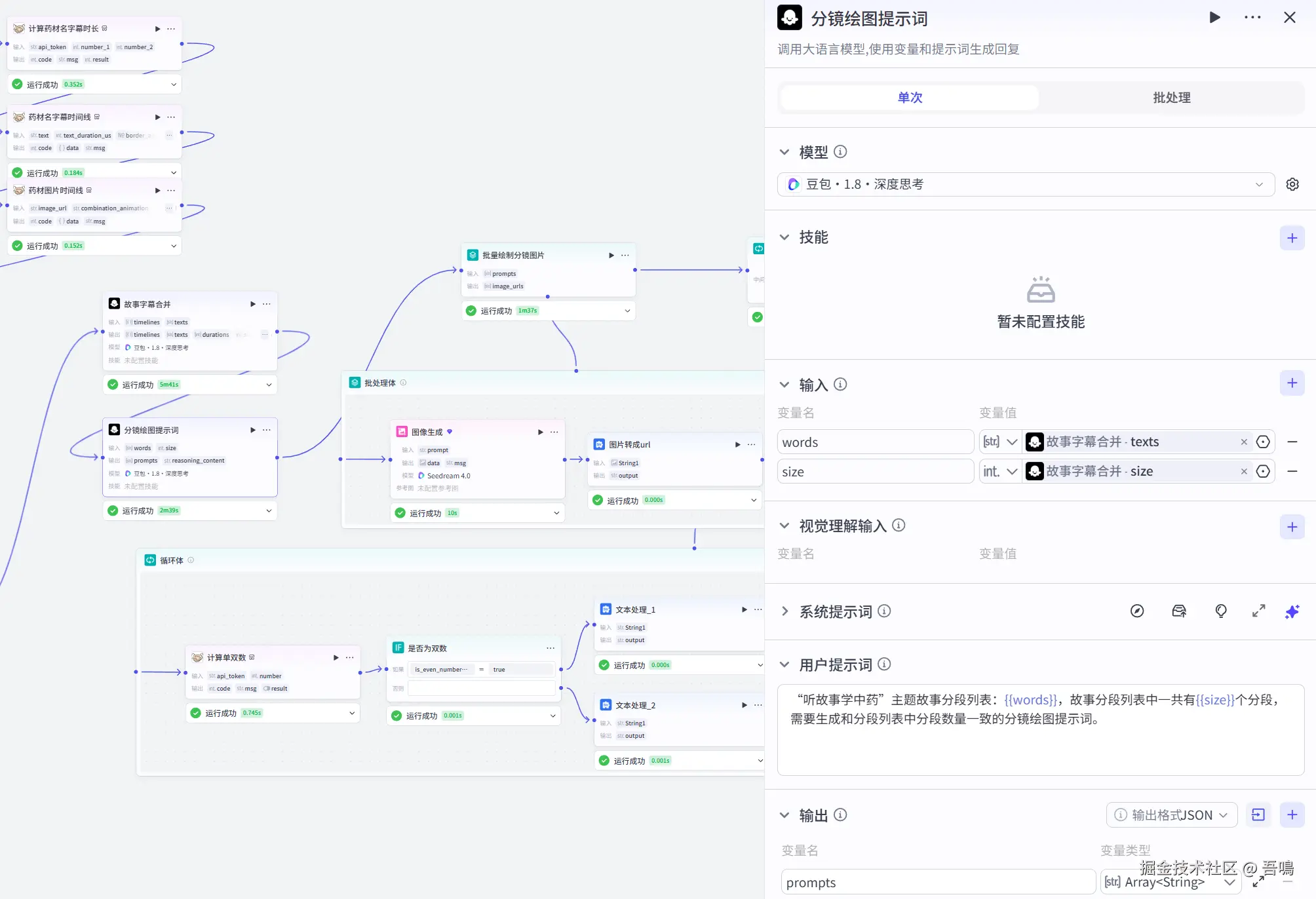 这个节点的作用是用来生成视频分镜的图片,使用到了扣子官方的图像生成节点。