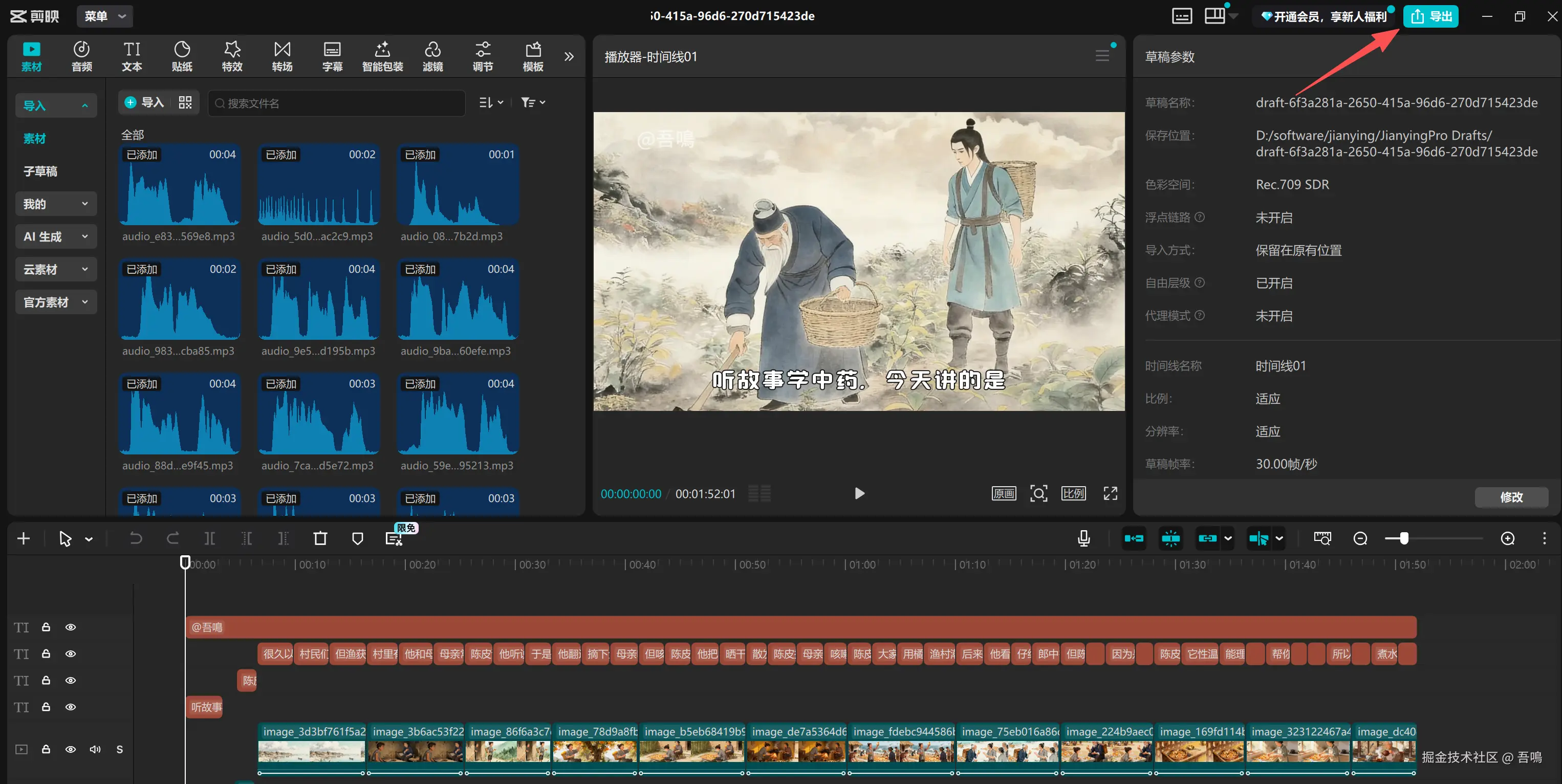 同时,会把生成好的中药故事文案生成剪映的字幕时间线。